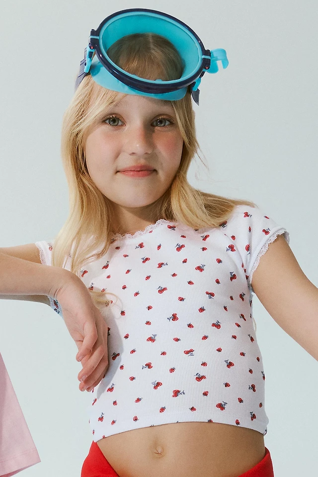 Ardene Kids Lace Trim Fitted T-Shirt | Size Large | Spandex/Cotton