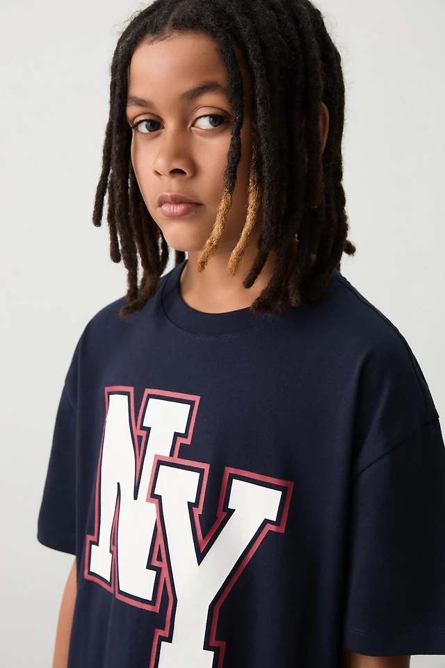 Ardene Kids Oversized Graphic T-Shirt in Dark Blue | Size | 100% Cotton