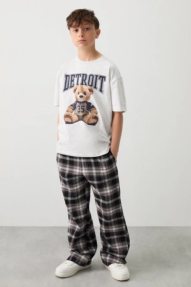 Ardene Kids Plaid Flannel Straight Leg Pants in Black | Size | 100% Cotton