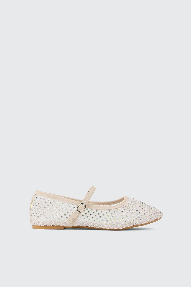 Ardene Kids Rhinestone Fishnet Mary Janes in Beige | Size