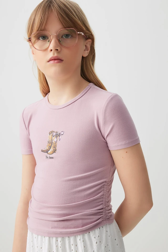 Ardene Kids Ruched Side Graphic T-Shirt in Medium Purple | Size XL | Polyester/Elastane