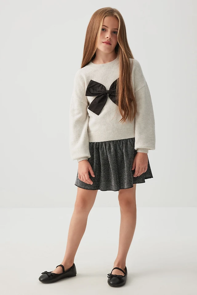 Ardene Kids Shirred Waist Shiny Mini Skirt in Dark Grey | Size | Polyester/Elastane