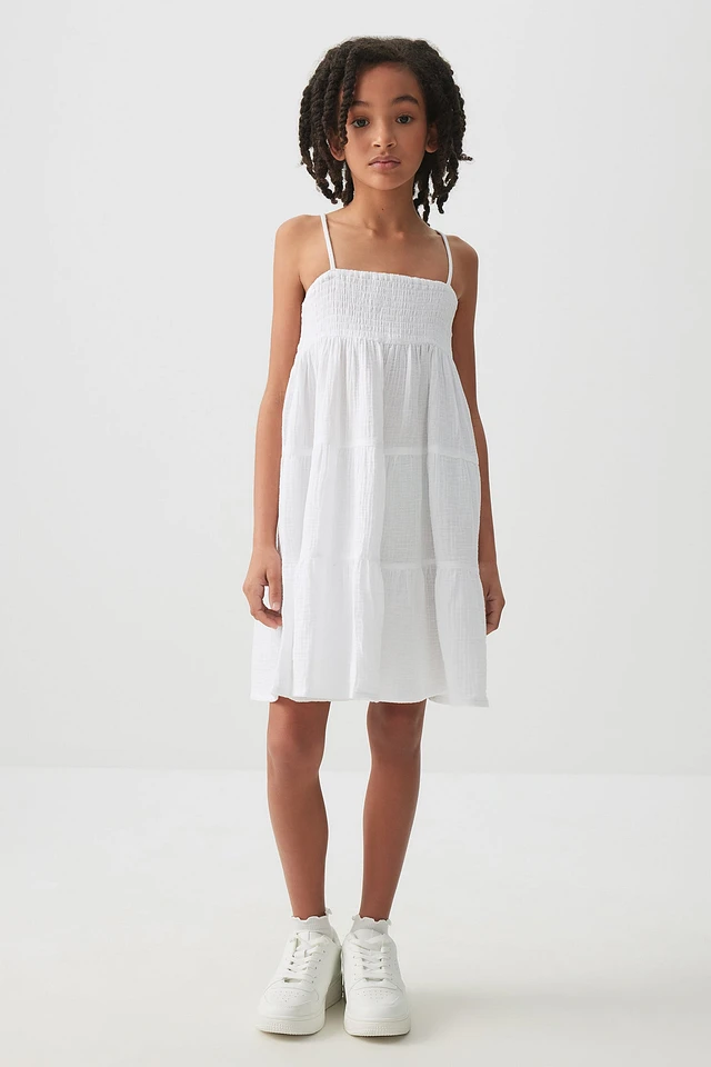 Ardene Kids Smocked Top Tiered Dress in White | Size | 100% Cotton