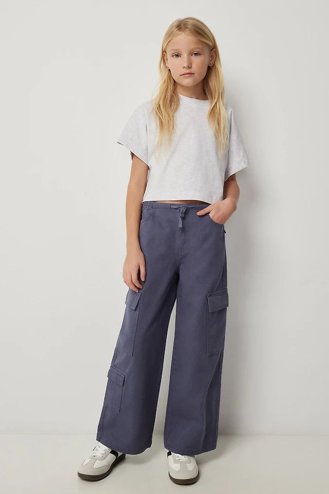 Ardene Kids Wide Leg Cargo Pants in Dark Blue | Size | 100% Cotton
