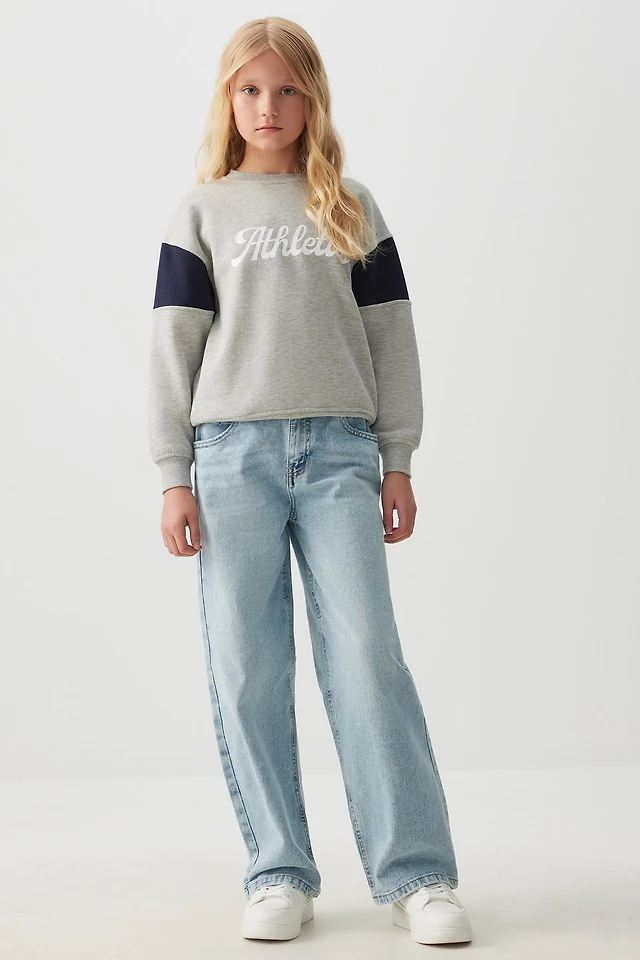 Ardene Kids Wide Leg Jeans in Light Blue | Size 7 | 100% Cotton