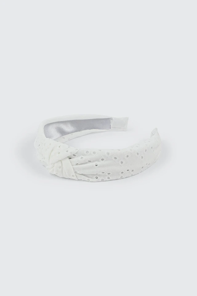 Ardene Knotted Eyelet Embroidered Headband in White | Polyester