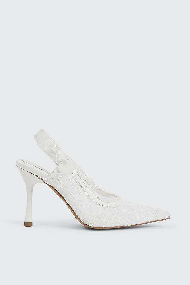 Ardene Lace Slingback Pumps in White | Size