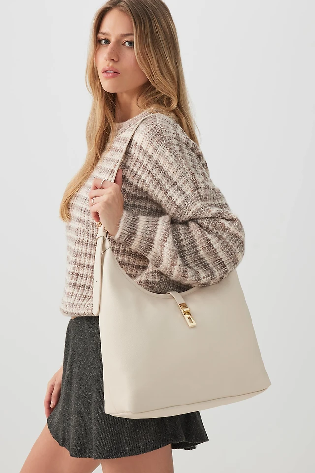Ardene Large Faux Leather Tote Bag in Beige | Faux Leather/Polyester