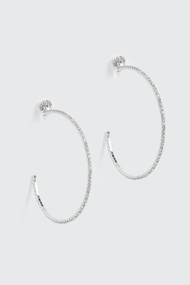 Ardene Large Rhinestone Hoop Earrings in Silver | Stainless Steel