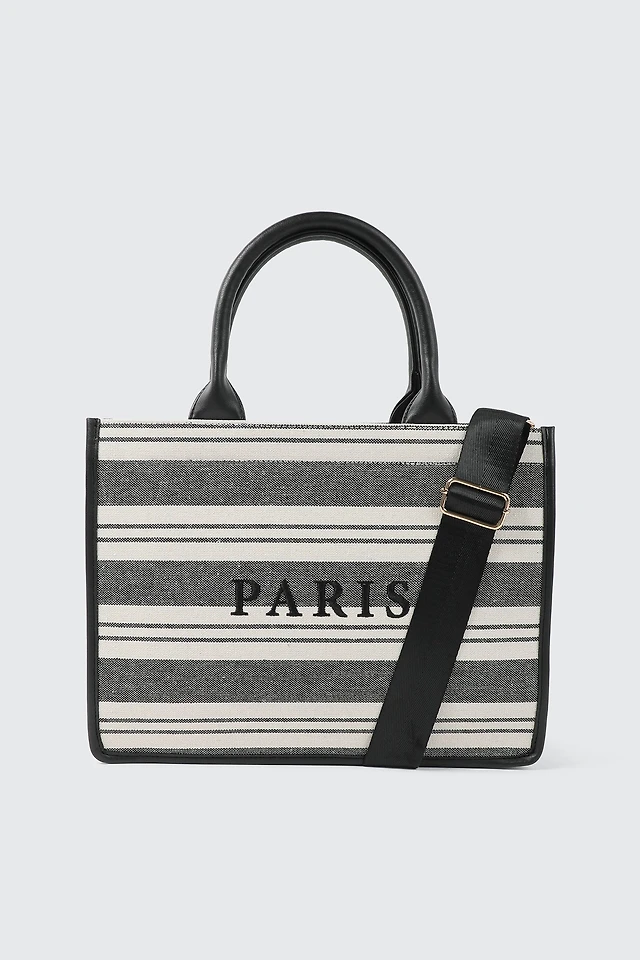 Ardene Large Striped Tote Bag in Black | 100% Recycled Polyester | Eco-Conscious