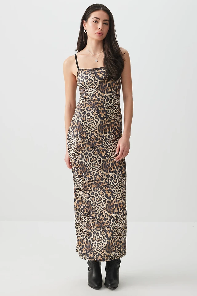 Ardene Leopard Slinky Maxi Dress in Brown | Size | Polyester/Spandex