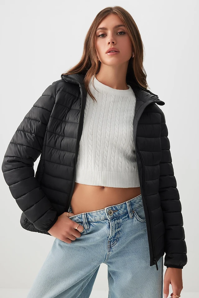 Ardene Lightweight Puffer Jacket in Black | Size | Polyester/Nylon