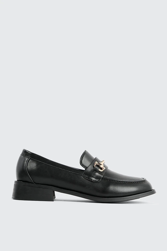 Ardene Loafers with Metal Ornament in Black | Size | Faux Leather
