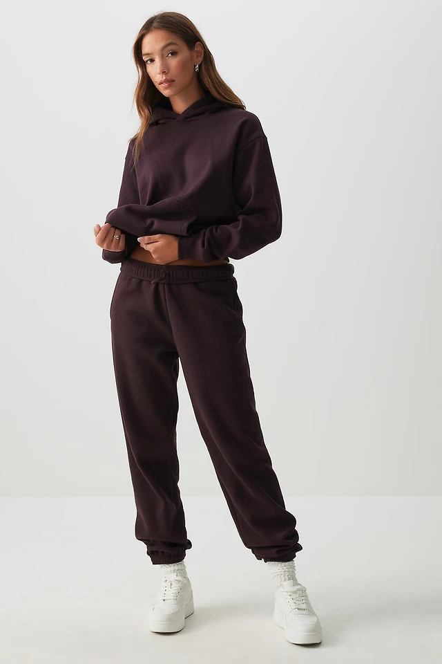 Ardene MADESOFT Fleece Baggy Sweatpants in Fig | Size | Polyester/Cotton | Eco-Conscious