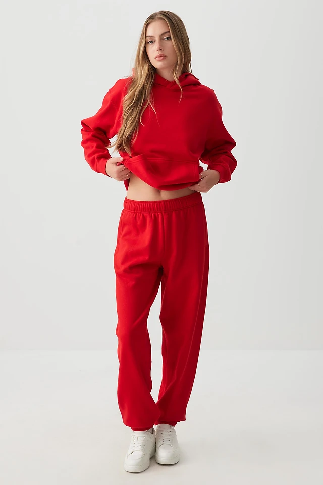 Ardene MADESOFT Fleece Baggy Sweatpants in Flame Red | Size | Polyester/Cotton | Eco-Conscious