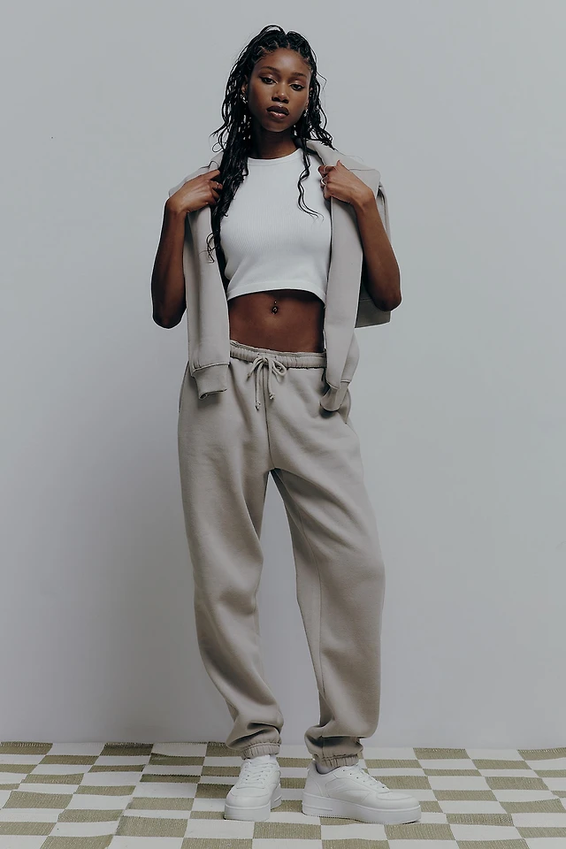 Ardene MADESOFT Fleece Baggy Sweatpants in Pebble Taupe | Size | Polyester/Cotton | Eco-Conscious
