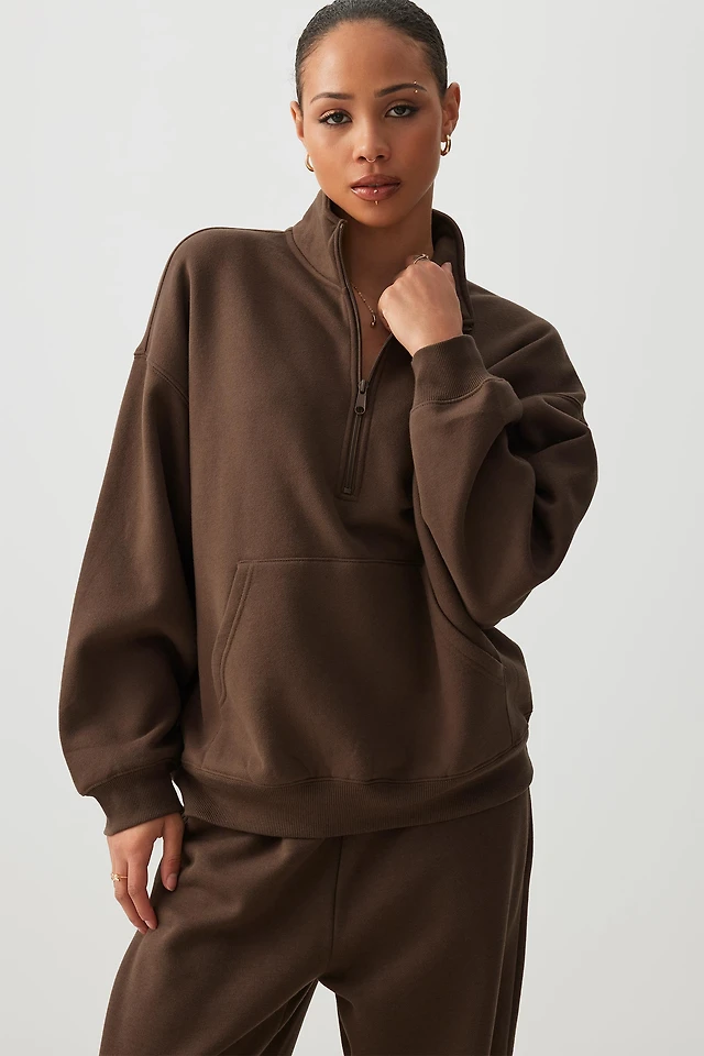 Ardene MADESOFT Fleece Oversized Half Zip Sweatshirt in Espresso | Size | Polyester/Cotton | Eco-Conscious