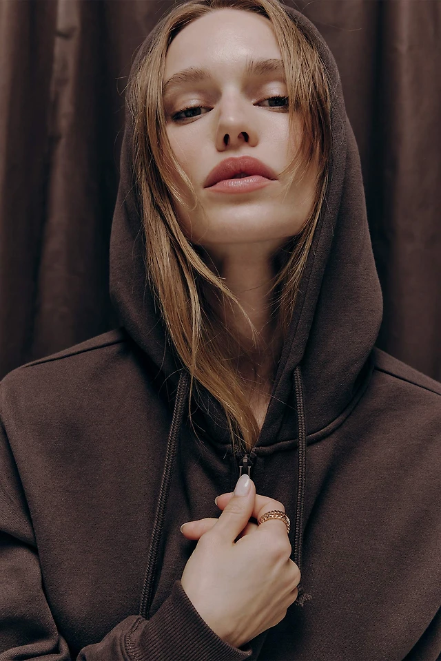 Ardene MADESOFT Fleece Short Zip Up Hoodie in Terra Brown | Size | Polyester/Cotton | Eco-Conscious