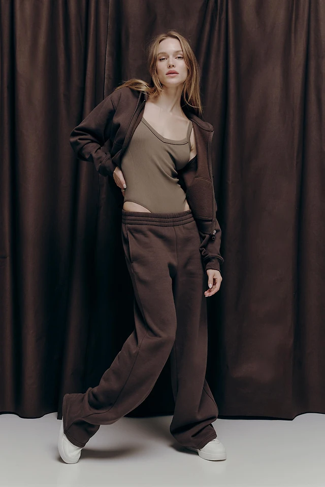 Ardene MADESOFT Fleece Straight Leg Sweatpants in Terra Brown | Size | Polyester/Cotton | Eco-Conscious