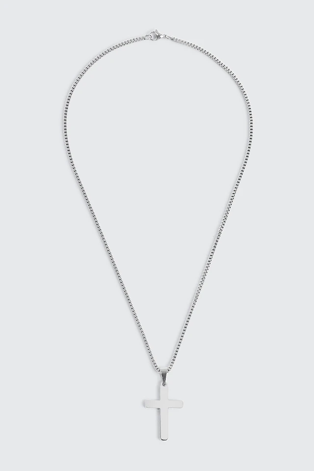 Ardene Man Stainless Steel Cross Pendant Chain Necklace For Men in Silver
