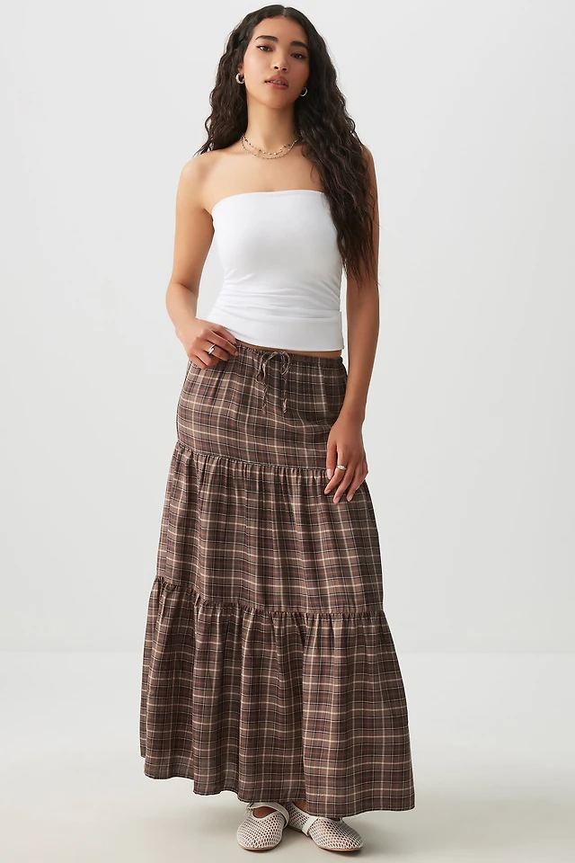 Ardene Maxi Tiered Skirt in Brown | Size Large | 100% Viscose