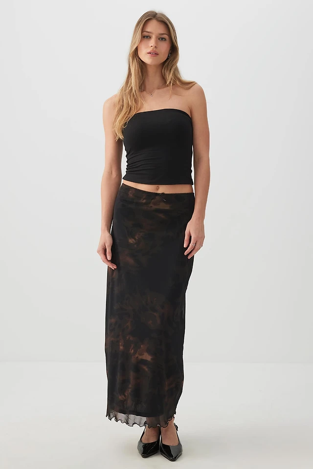 Ardene Mesh Maxi Skirt in Brown | Size | Polyester/Spandex