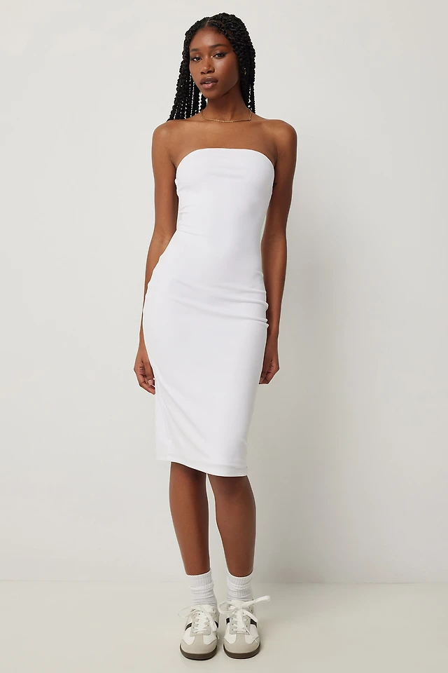 Ardene Midi Strapless Dress in White | Size Large | Polyester/Spandex