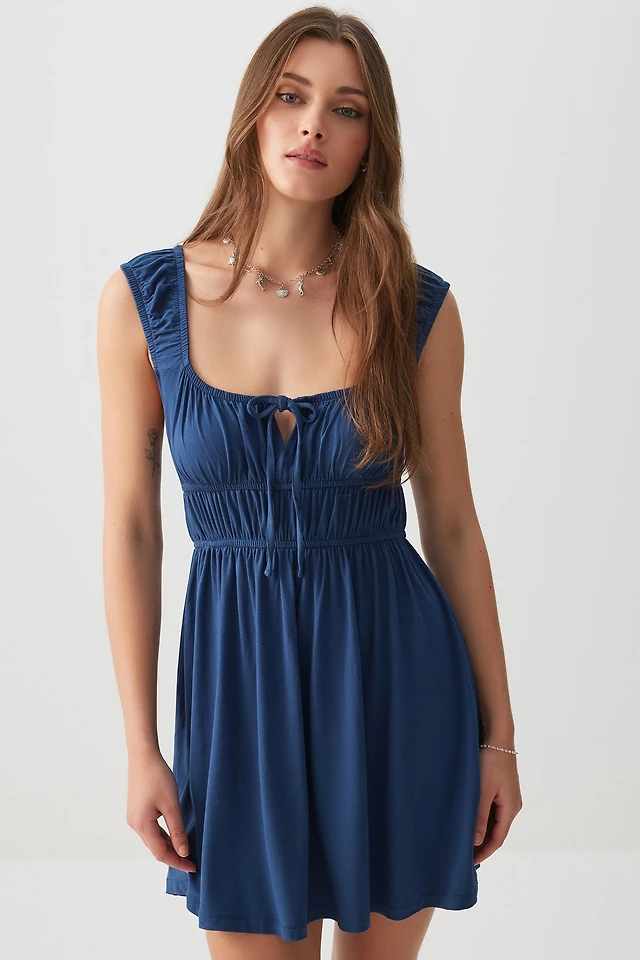 Ardene Milkmaid Mini Dress in Dark Blue | Size XS | Elastane/Viscose