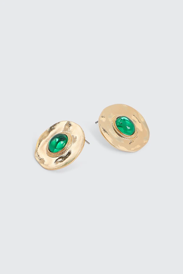 Ardene Molten Earrings with Green Stone Detail in Gold | Stainless Steel