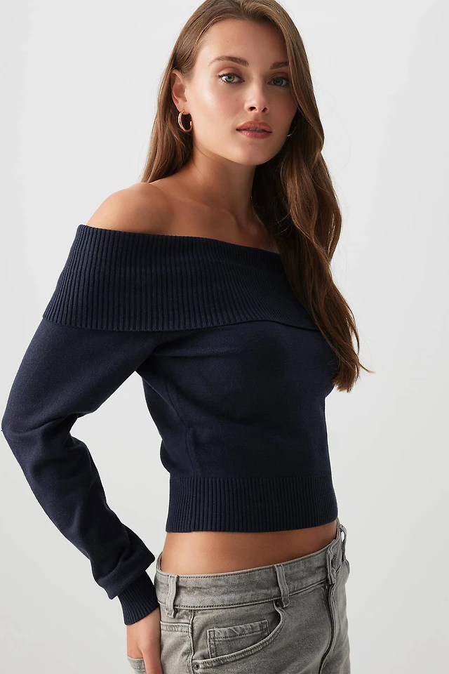 Ardene Off Shoulder Sweater in Dark | Size | Polyester/Nylon/Viscose