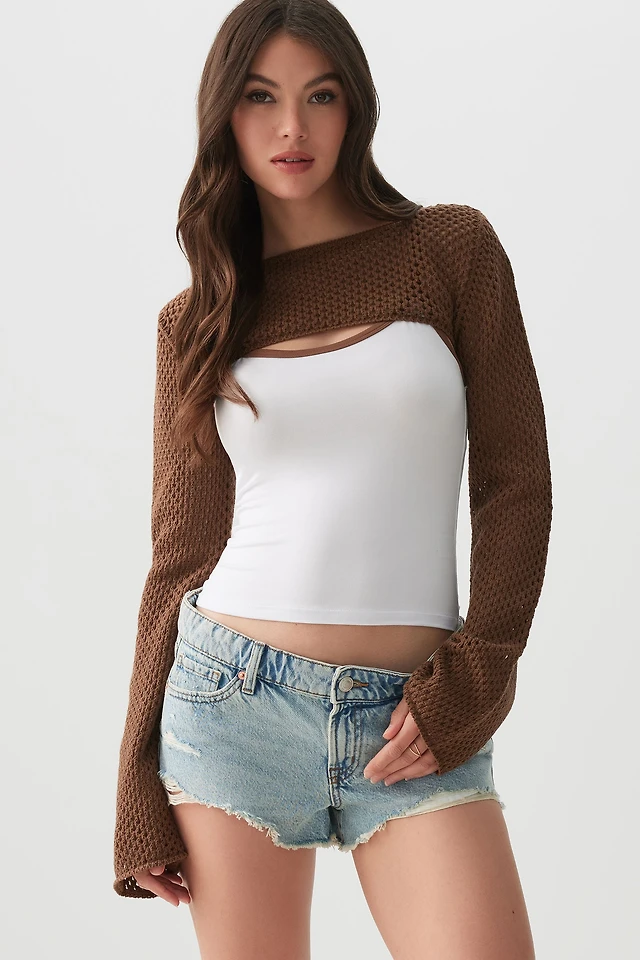 Ardene Open Stitch Shrug Sweater in Brown | Size Large | 100% Cotton