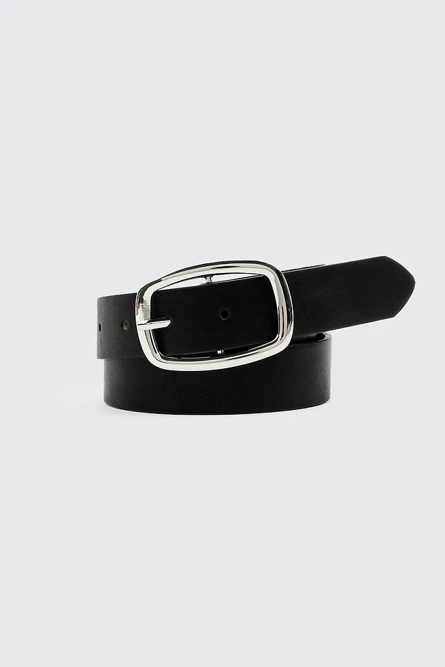Ardene Oval Buckle Belt in Black | Size Large | Faux Leather
