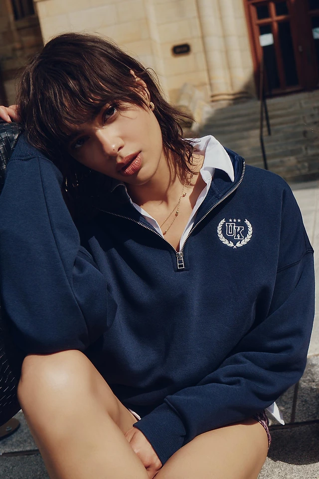 Ardene Oversized 1/4 Zip Sweatshirt in Dark Blue | Size | Polyester/Cotton | Fleece-Lined