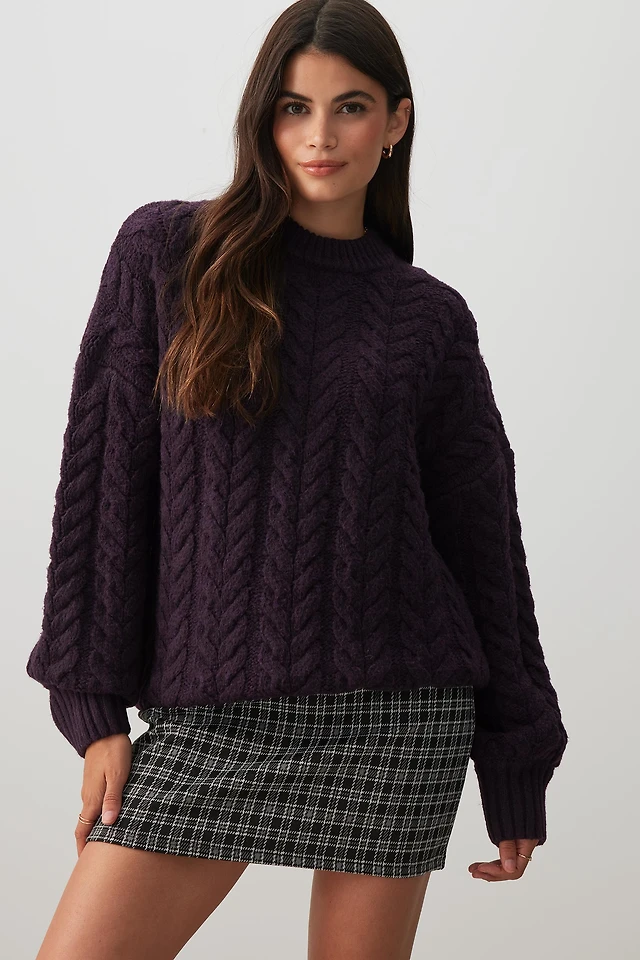 Ardene Oversized Cable Knit Crew Neck Sweater in Dark Purple | Size | Polyester | Eco-Conscious