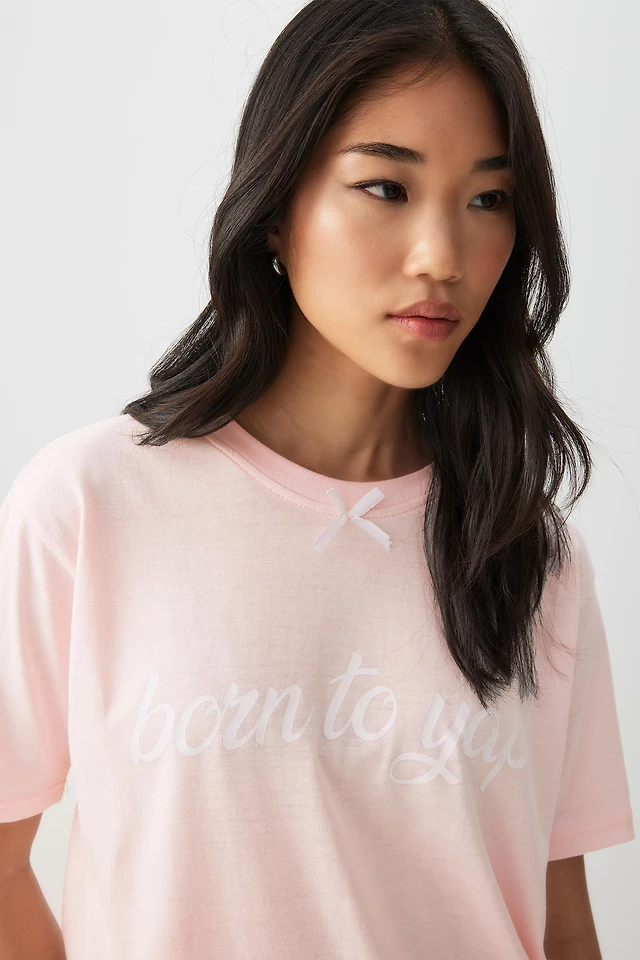 Ardene Oversized Graphic T-Shirt with Bow in Light | Size | Polyester/Cotton