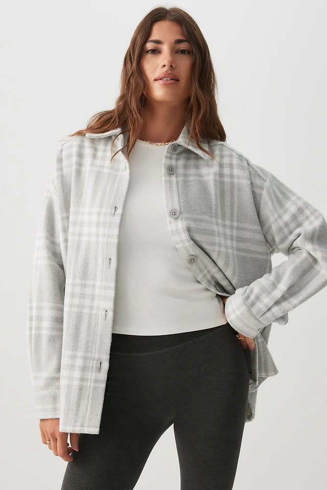 Ardene Oversized Plaid Shirt Jacket in Grey | Size | Polyester/Cotton/Viscose