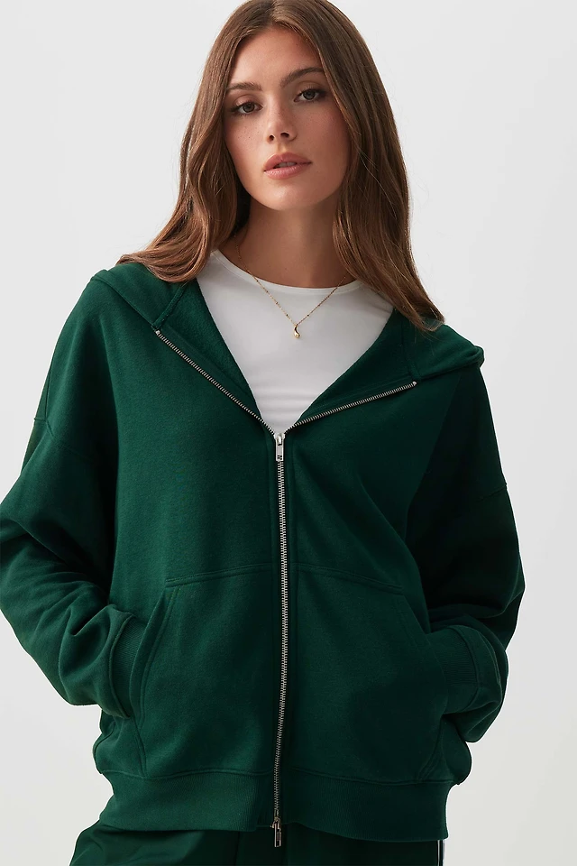 Ardene Oversized Zip Up Graphic Hoodie in Dark Green | Size | Polyester/Cotton | Fleece-Lined