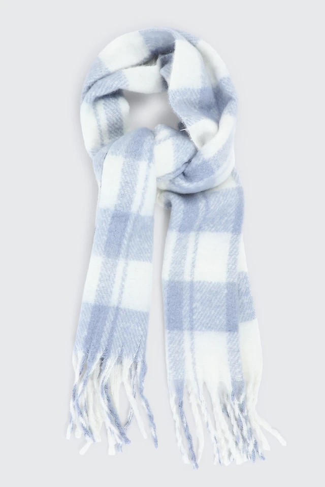 Ardene Plaid Fuzzy Scarf in Light Blue | 100% Recycled Polyester | Eco-Conscious