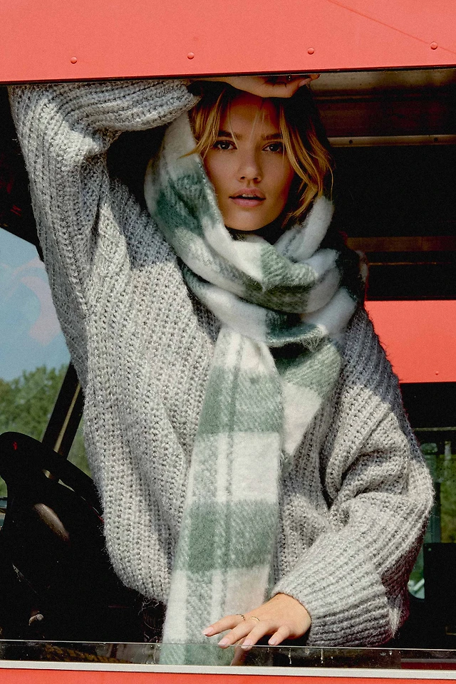 Ardene Plaid Fuzzy Scarf in Off-White | 100% Recycled Polyester | Eco-Conscious
