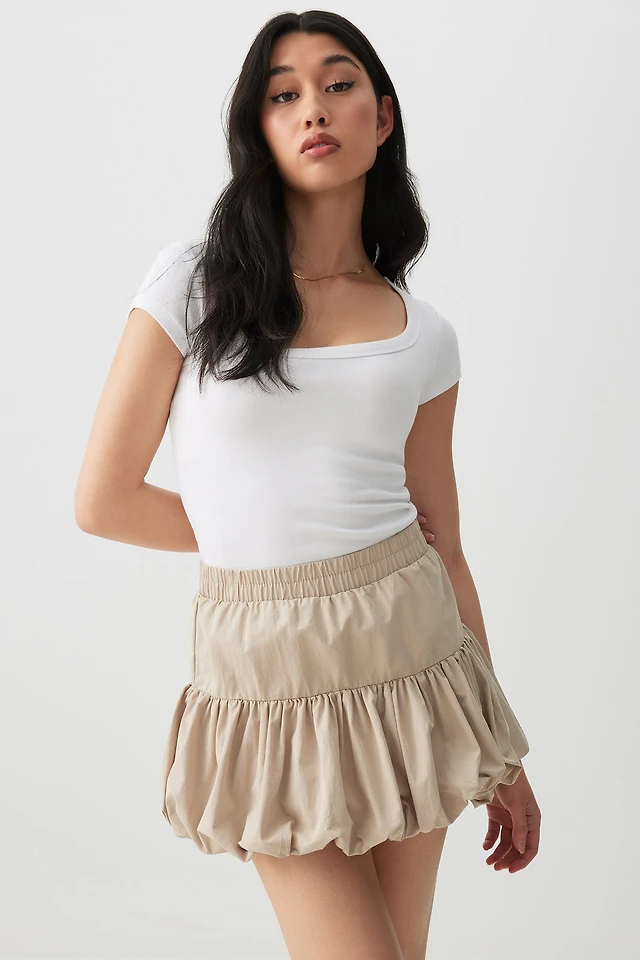 Ardene Pleated Bubble Mini Skirt in Beige | Size | Nylon/Cotton
