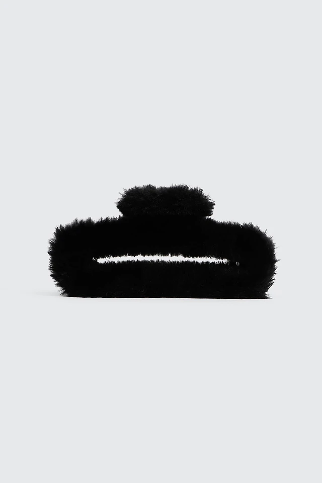 Ardene Plush Rectangular Cutout Hair Claw in Black