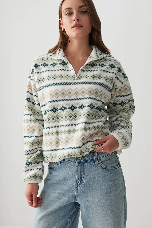 Ardene Polar Fleece 1/4 Zip Sweatshirt in Dark Green | Size | Polyester | Eco-Conscious