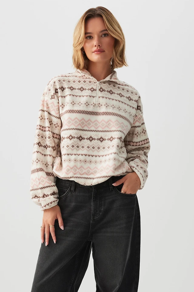 Ardene Polar Fleece 1/4 Zip Sweatshirt in Medium Pink | Size | Polyester | Eco-Conscious