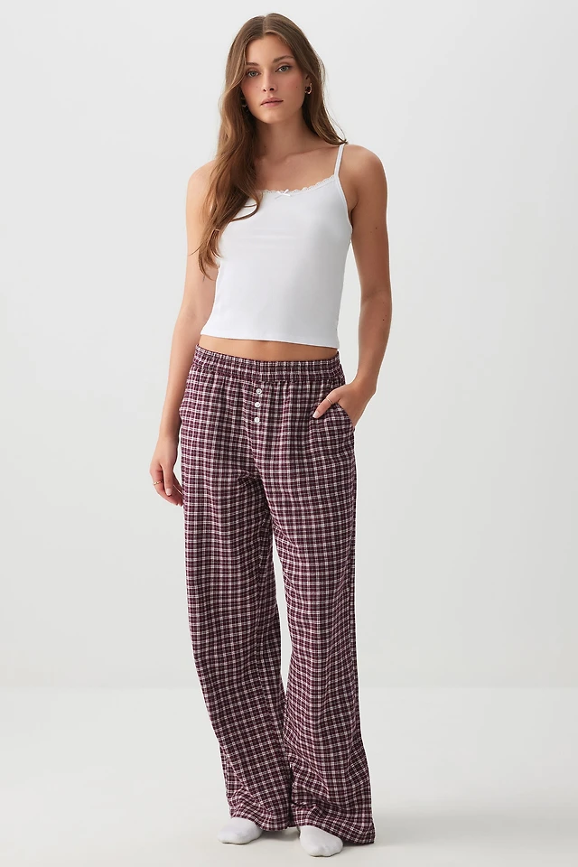 Ardene Printed Flannel PJ Pants in Burgundy | Size Large | 100% Cotton