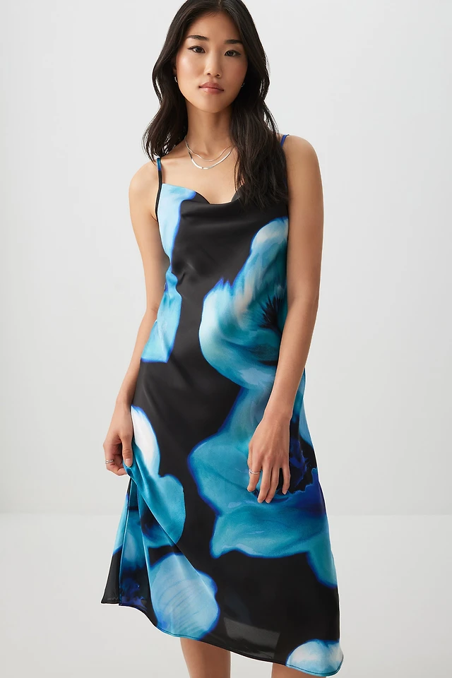 Ardene Printed Satin Slip Dress in Black | Size XS | Polyester