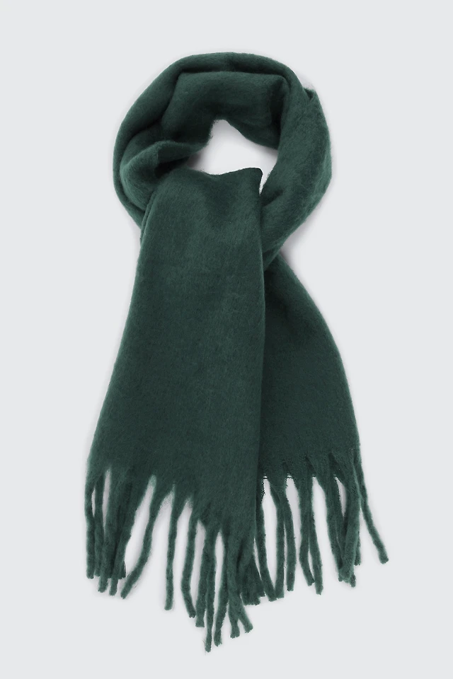Ardene Rectangular Scarf with Fringes in Dark Green | Polyester