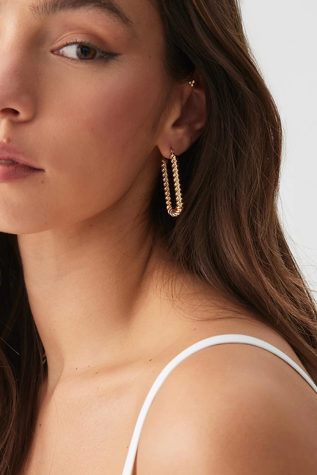 Ardene Rectangular Twisted Hoop Earrings in Gold | Stainless Steel