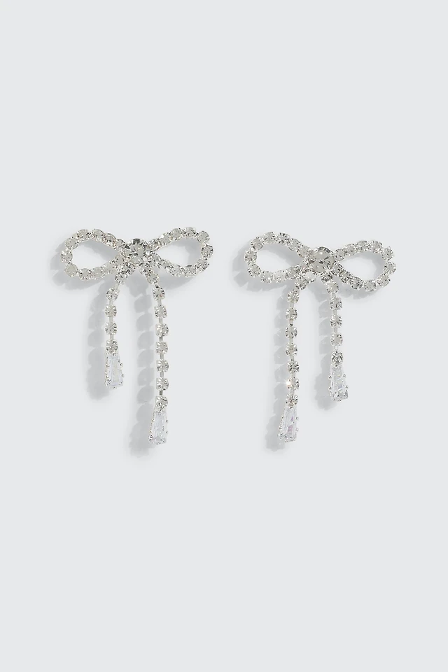 Ardene Rhinestone Bow Earrings in Silver | Stainless Steel