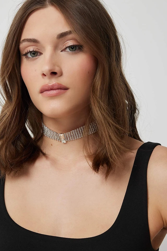 Ardene Rhinestone Choker in Silver