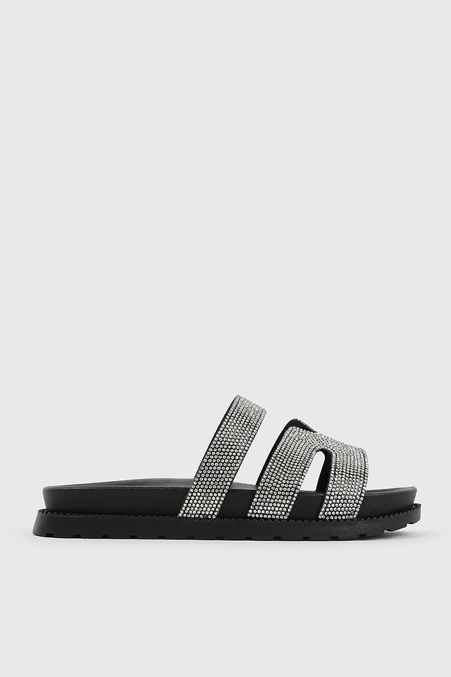 Ardene Rhinestone H-Strap Sandals in Black | Size